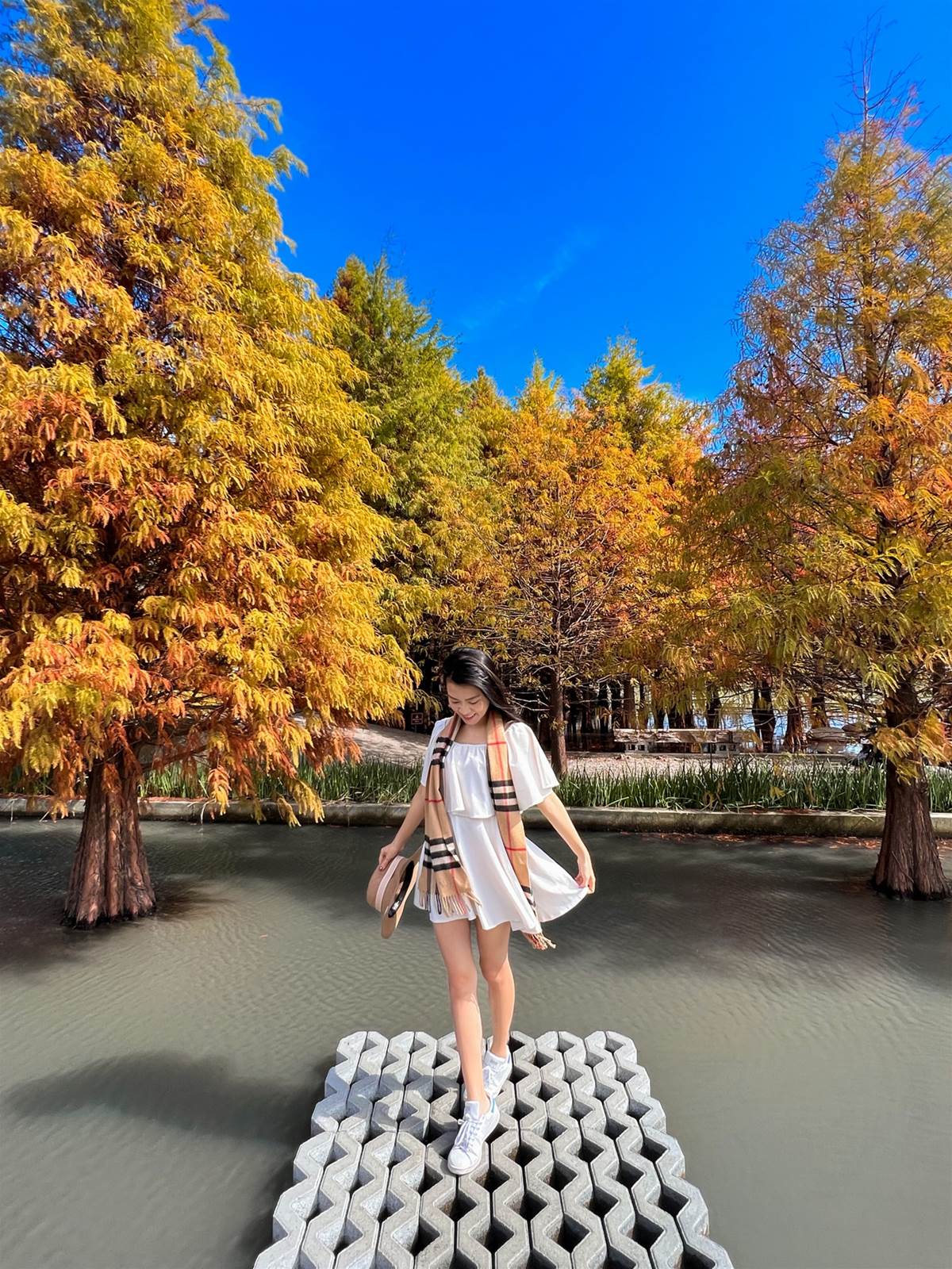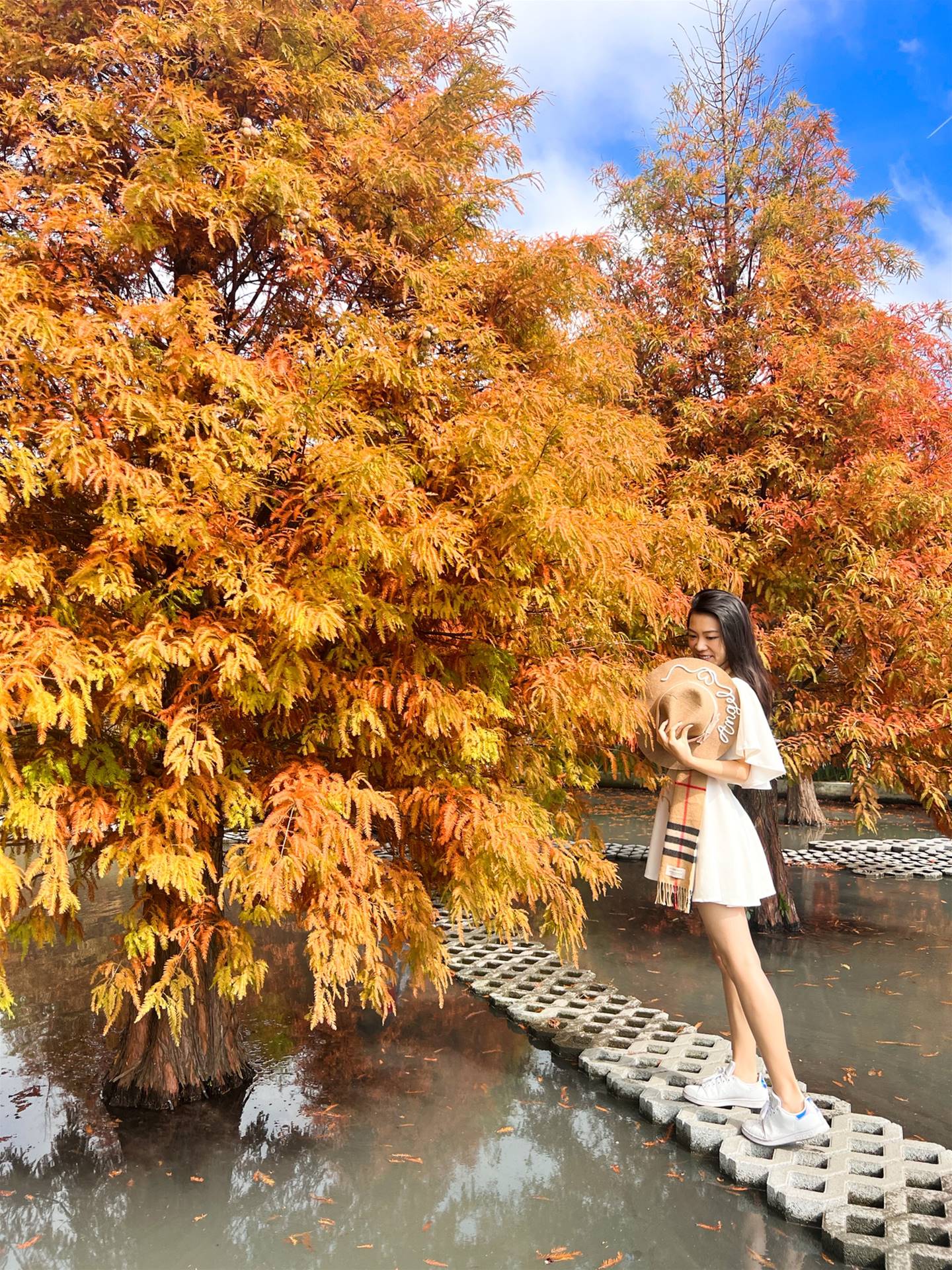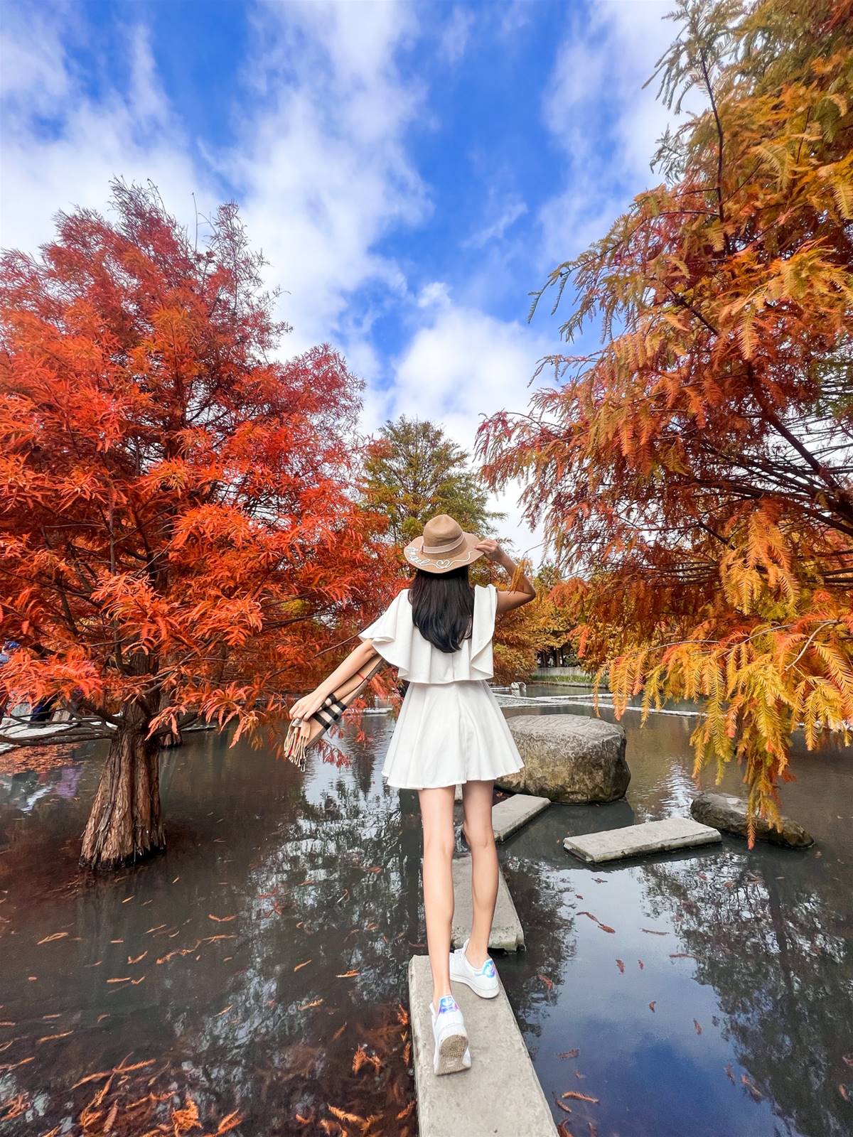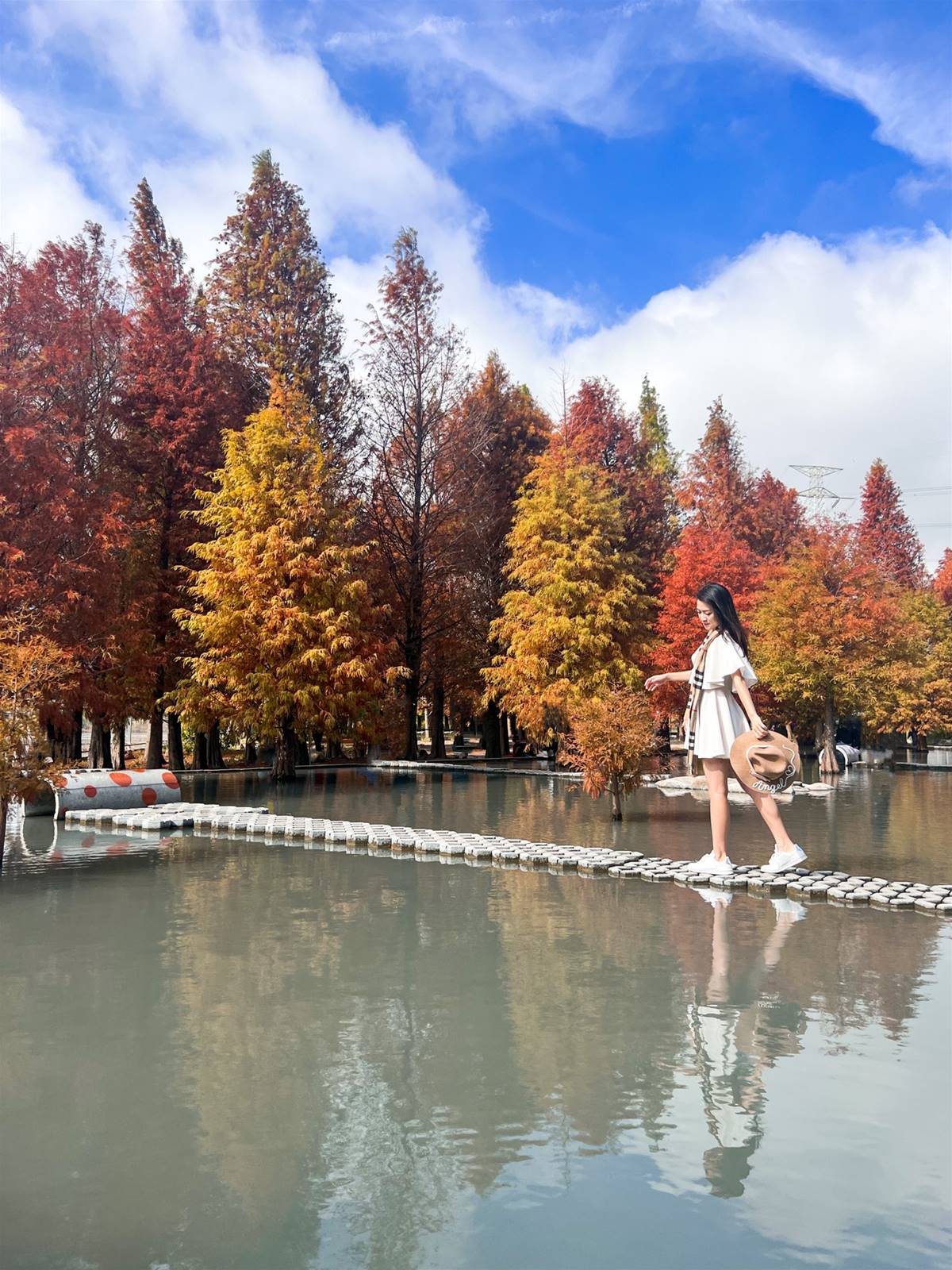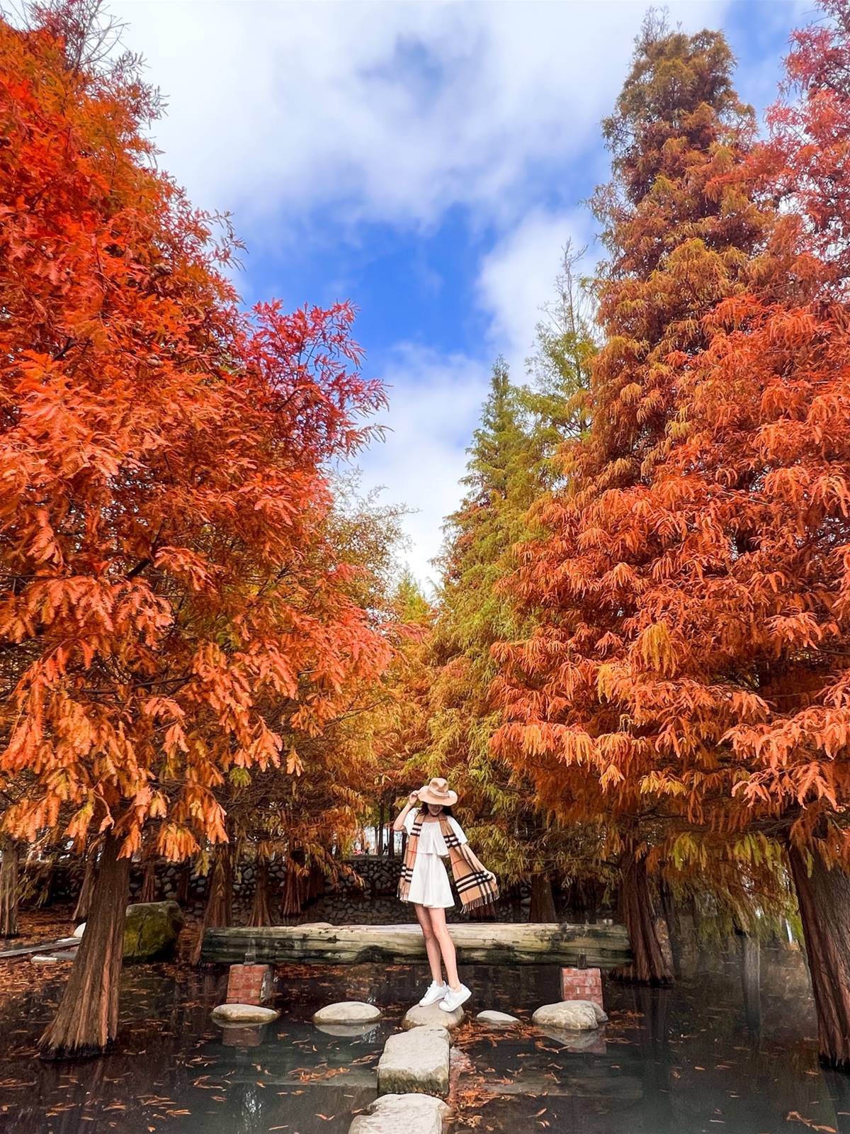 喜歡來這秘境追落羽松,因為這裏的樹有的已經變棕紅色了,而有些還是黃綠色。就像我們一樣,都在自己的時間內,照著自己的速度在自己的跑道上發光發熱。被譽為台中絕美的落羽松園區之一,八成紅的森林現在到了極佳觀賞期。