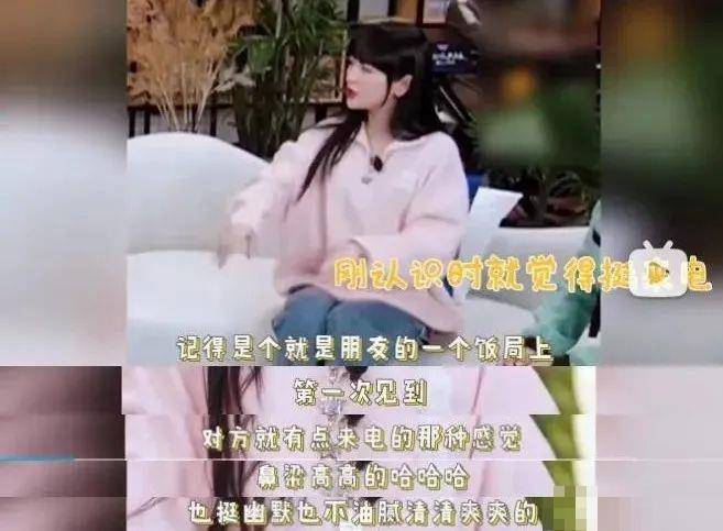 「朋友的一個飯局上,人生的我第一次見到對方就有點來電的那種感覺啊,劍眉心目笑的陽光,然后人要個子高高的,鼻梁高高的,然后很帥也很幽默,也不油膩,清清爽爽的,就是感覺每一條都挺像那個人物的,所以我就有點來動這種呃,小鹿亂撞的那種感覺就出來了。
