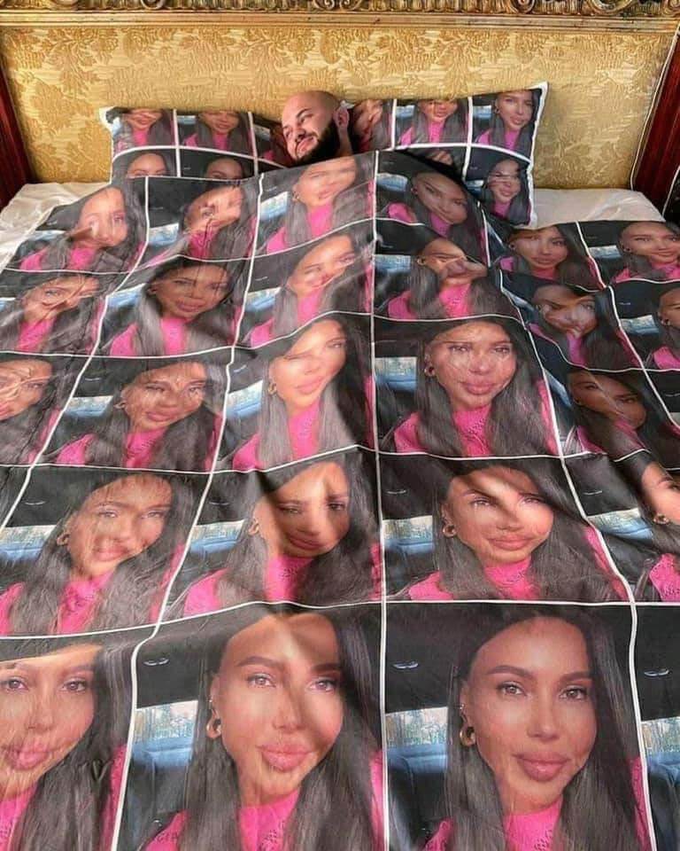 請問是有多瘋啦!這位推特男子因為太愛老婆了,竟然異想天開把自家愛妻的照片,印在日常生活很多物品上面,像是馬克杯、拼圖、旅行包、甚至他的床單全部都是!