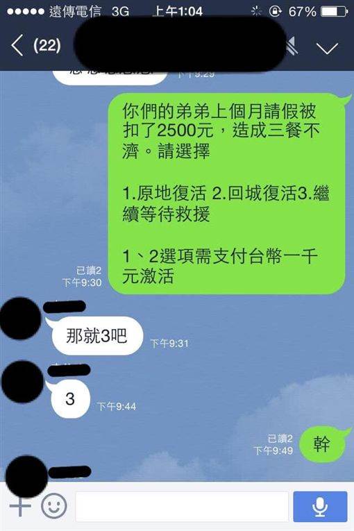 然而,有一天,原PO請假被扣錢,迫切需要姐姐的資助。原PO貼出了他與兩個姐姐的對話截圖,詢問她們是否可以資助他。讓原PO大為震驚的是,姐姐們毫不猶豫地選擇了繼續等待救援。