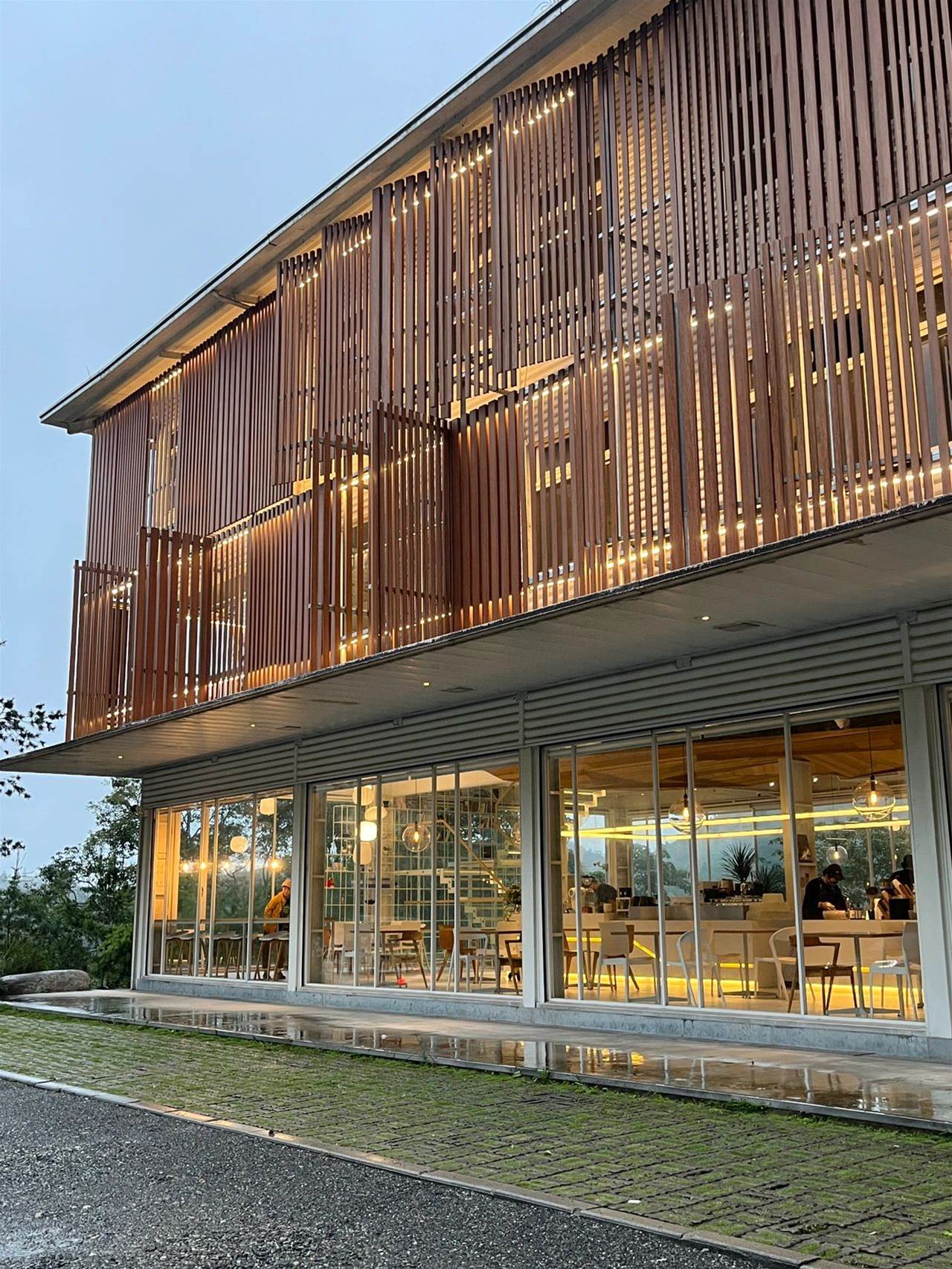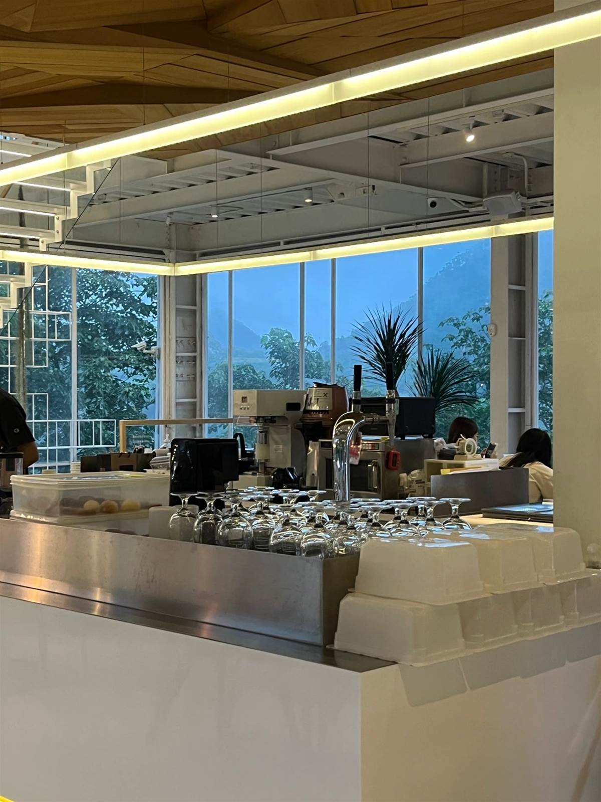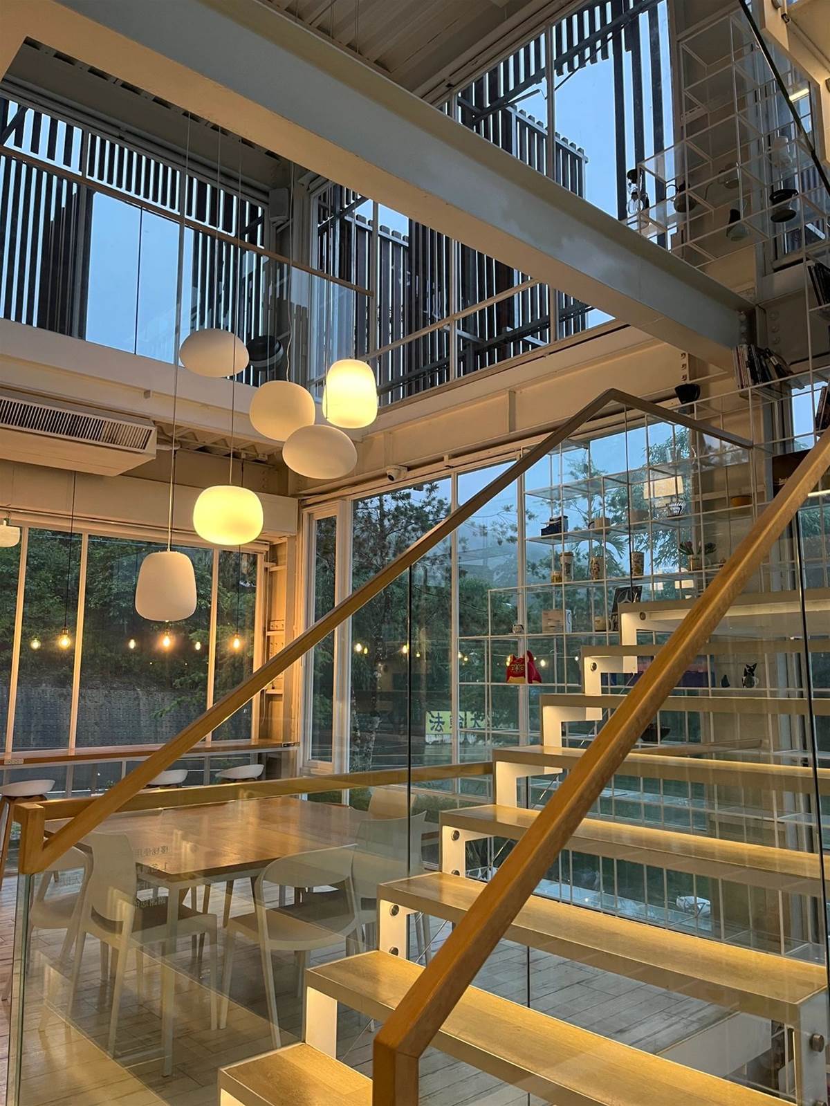 窗外看出去就是山嵐、樹林的景色去的時候剛好遇上咖啡廳點燈 整個非常明亮但只剩一樓能夠用餐 去的時候太晚了只剩三種甜品可以選⋯期待的鹹食也沒有提供了