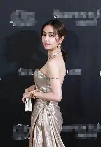 這件裙子由金色的面料制成,胸前抹胸設計展現出她修長的鎖骨和性感的曲線。而裙子的高開叉設計更是讓她展示出修長的雙腿。整個造型既充滿了女性的柔美與嫵媚,又不失她一直以來的個性與張揚。