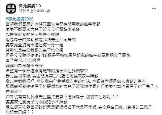 據《三立新聞網》報導,原PO表示,當初買房的時候,先生堅持要登記在她名下,結果引起婆婆不滿,甚至放話如果登記媳婦的名字,就是不孝順!