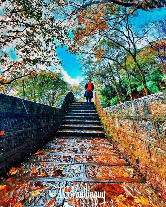 汐止拱北殿是一間擁有百年歷史的古跡廟宇,古樸的寺廟加上清幽的后山步道,走完一圈大約20分鐘。寺廟周圍也種植了超過六百棵的楓樹,等到轉紅之際,層層疊疊的綠葉化成一席紅色艷裝,其中最熱門的賞楓點就是古風彼岸橋和石砌雙拱橋,楓紅和建筑相互融合充滿意境,彷彿進到神隱少女的場景中,也是個絕佳的拍照點。